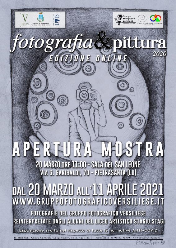 L’associazione culturale Gruppo Fotografico Versiliese ha deciso di non fermarsi di fronte al Covid, il Gruppo Fotografico Versiliese ha deciso di portare avanti il progetto di Fotografia&Pittura con gli alunni del Liceo artistico Don Lazzari – Stagi di Pietrasanta, il progetto consiste nel proporre 43 immagini fotografiche che spaziano su moltissime tecniche e tematiche diverse, paesaggistica, ritrattistica, naturalistica, street photography e digital art agli alunni delle classi 3B, 4B e 5B del Liceo artistico con indirizzo Arti Figurative, loro dopo un’attenta analisi e ricerca le hanno reinterpretate con varie tecniche grafico-pittoriche come pittura ad olio, acrilico ed acquarello, alla grafite, matita e penna a china applicati su vari supporti come tela, carta e cartone.