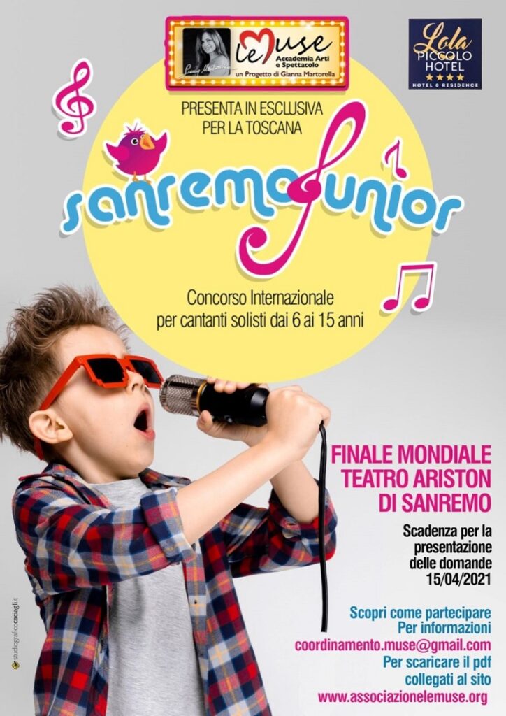 L’ Accademia Le Muse di Piombino (LI) diretta da Gianna Martorella è il “punto sanremojunior” autorizzato per la selezione degli aspiranti cantanti al concorso internazionale di canto per ragazzi di età compresa tra i 6 ei 15 anni.
