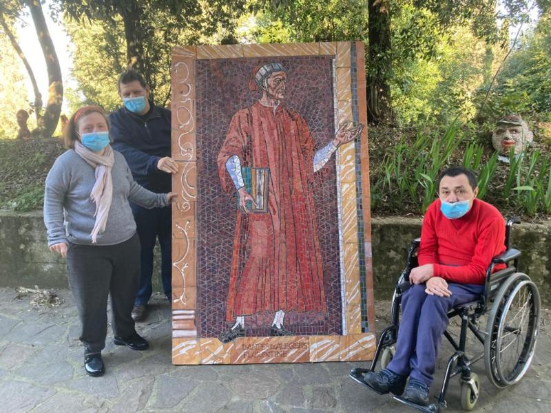 Un mosaico per festeggiare Dante Alighieri nel ‘Dantedì’ per i settecento anni dalla sua morte.