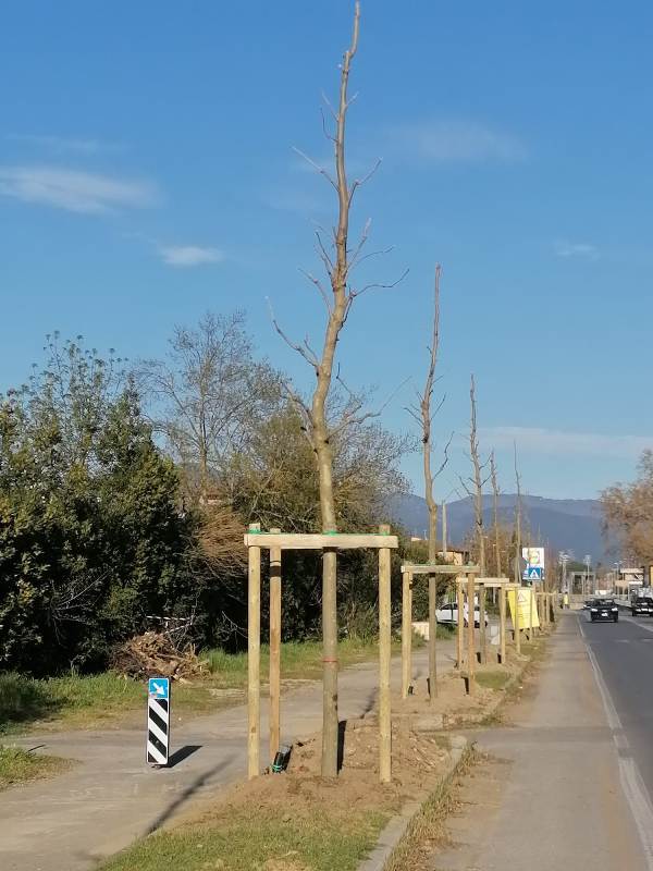 È partito nei giorni scorsi l’intervento di rinnovo arboreo sul viale delle Cascine, nel tratto compreso tra la rotatoria e il sottopasso ferroviario. Vengono piantumati 46 platani su entrambi i lati della strada, a sostituzione della siepe formata da "Cupressus Arizonica" presente sul lato sud e di 10 “Acer platanoide” sul lato nord della strada, che sono affetti da malattie e morti in piedi. L’intervento fa parte del più ampio progetto di riqualificazione paesaggistica del tratto cittadino del viale delle Cascine, che viene eseguito insieme alla realizzazione della nuova rotatoria sull’Aurelia, in corso di completamento.