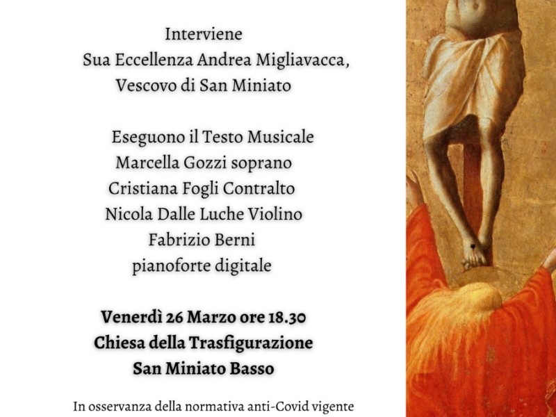 Il 26 marzo il Dramma Popolare propone il tradizionale appuntamento precedente la Settimana Santa. Quest’anno verrà proposto lo “STABAT MATER” di Giovanni Battista Pergolesi nella Chiesa della Trasfigurazione di San Miniato Basso. Una meditazione spirituale con l’intervento di S.E. Andrea Migliavacca Vescovo di San Miniato, accompagnata dall’esecuzione del gruppo musicale diretto dal Maestro Fabrizio Berni.