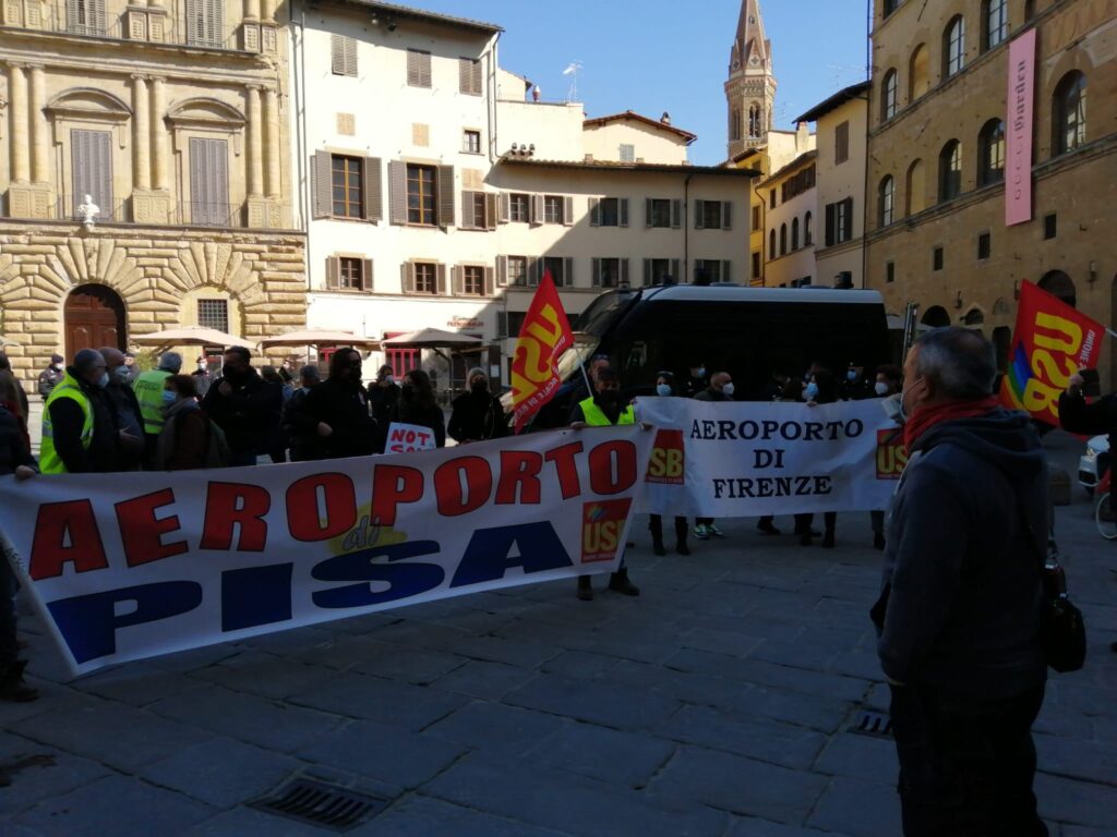 Nella mattinata di oggi, mercoledì 24 marzo, un presidio dell’Unione Sindacale di base si è ritrovato sotto Palazzo Vecchio a Firenze: “Chiediamo a Toscana Aeroporti il ritiro del progetto e alle istituzioni, regione e comune intervengano e proteggano i suoi aeroporti dall’assalto della speculazione e tutelino i posti di lavoro, diritti, salario, salute e sicurezza”.