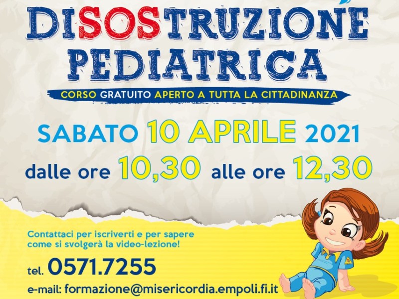 Tutta la cittadinanza è invitata a partecipare a un importante appuntamento formativo che riguarda la salute dei più piccoli: sabato 10 aprile, dalle ore 10.30 alle 12.30, si terrà infatti un nuovo Corso Online di Disostruzione Pediatrica organizzato dalla Misericordia di Empoli, gratuito e in modalità video-lezione.