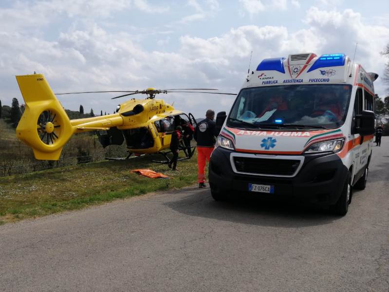 Un 51enne di Castelfranco a bordo della sua bici è stato colpito da un'auto a Massarella, frazione ai confini di Fucecchio. L'uomo è stato trasferito in elisoccorso all'ospedale fiorentino di Careggi in codice rosso. Non sono note le sue condizioni di salute. Il fatto è avvenuto questa mattina poco prima delle 10.30 in via Ramoni. Sul posto la Pubblica assistenza di Fucecchio e le forze dell'ordine.