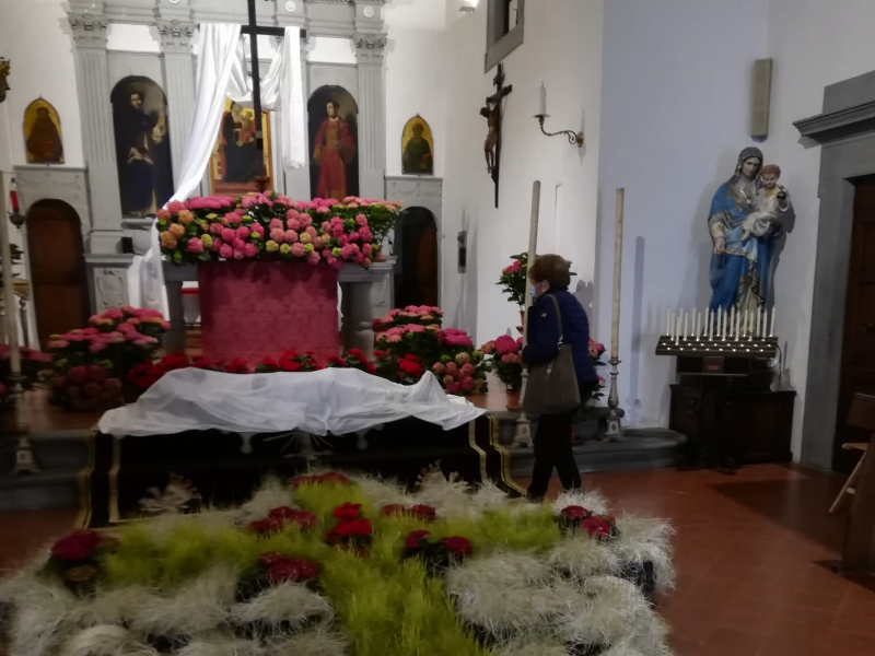 La chiesa, detta anche della Misericordia, situata in piazza Simone Martini, adiacente alla sede della Misericordia di San Casciano, è rifiorita insieme ai suoi Sepolcri, le vecce di grano che, arricchite da margherite e begonie, costituiscono un tappeto floreale steso sotto l’altare. Una tradizione sancascianese che la comunità porta avanti da oltre mezzo secolo nelle chiese di Santa Maria sul Prato e nella Chiesa del Suffragio grazie all’impegno e alla passione di alcuni storici volontari come Paolo Bacci e la Compagnia del Suffragio. Ad accogliere con entusiasmo la riapertura della chiesa che è il sindaco Roberto Ciappi. “Un monumento simbolo della nostra storia e della cultura religiosa e sociale di San Casciano – interviene il primo cittadino - che siamo felici di rivivere nella nostra quotidianità, la chiesa con le tante opere d’arte custodite al suo interno è un piccolo grande museo di San Casciano”.