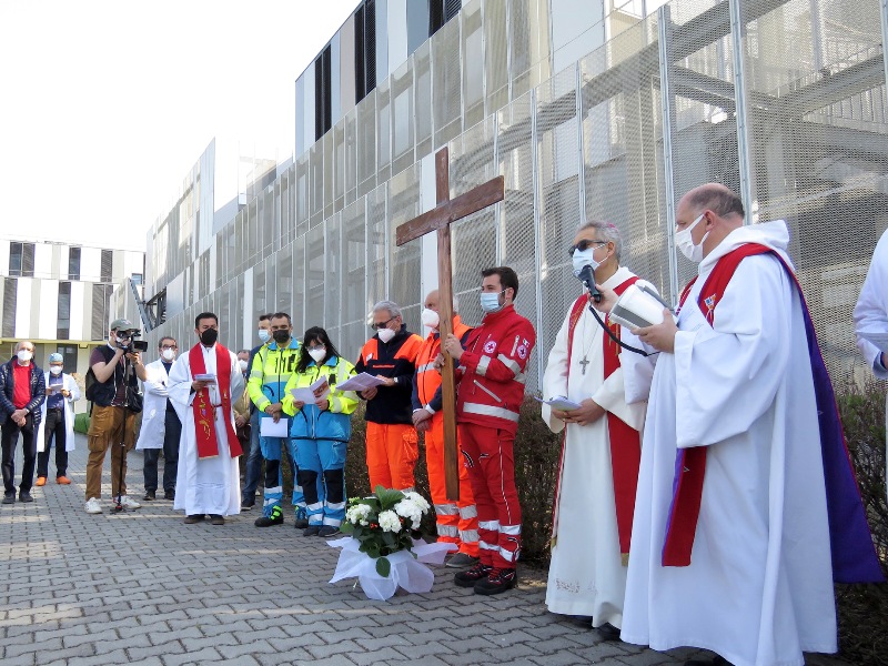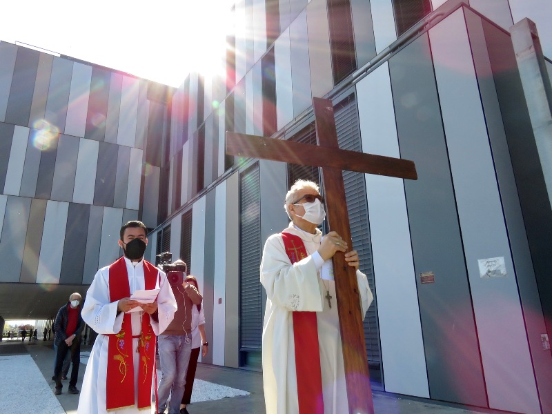 La Croce è tornata davanti all’ospedale di Prato. Per testimoniare vicinanza ai malati e sostegno al personale sanitario per il loro grande impegno, il vescovo Giovanni Nerbini ha voluto celebrare anche quest’anno la via crucis del venerdì santo di fronte al luogo simbolo nella lotta al Covid.