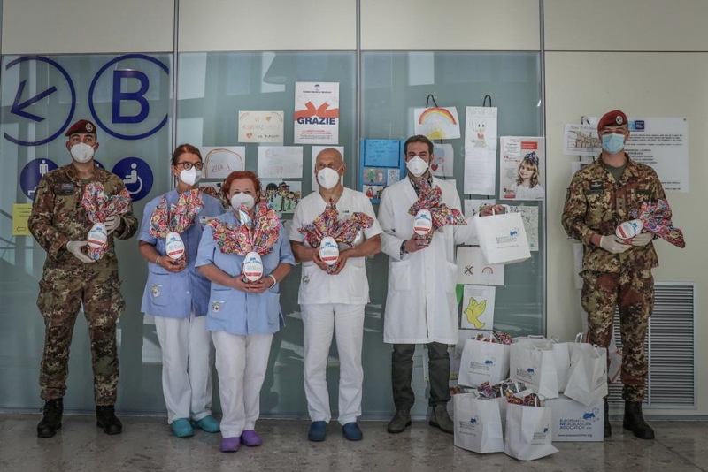 Una prima donazione è stata effettuata ai bambini ricoverati nel reparto di pediatria dell’Ospedale San Jacopo di Pistoia dove i militari sono stati accolti dal direttore del reparto Dott. Rino Agostiniani. Successivamente i paracadutisti del Nembo hanno portato le uova presso l’Istituto casa famiglia Sant’Anna, all’Istituto per l’infanzia Pelagia Romoli e alla Casa Famiglia “Piccoli Passi” ONLUS di Monsummano Terme (PT), tutti istituti che rivolgono la propria attenzione ai minori e alle famiglie in difficoltà.