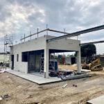 Torniamo ai lavori. Sono state realizzate le opere in cemento armato: la platea e i plinti di fondazione, tutte le predisposizioni dei sottoservizi e le tamponature laterali. Nelle prossime settimane verranno completate le pannellature e la copertura per poi passare al montaggio dei rivestimenti, infissi e infine tutte le rifiniture.