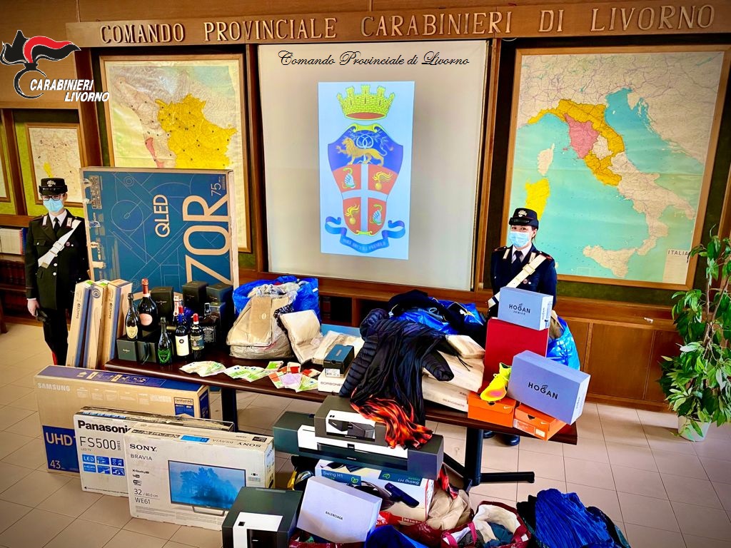 Il materiale rubato nel negozio di Livorno è stato rinvenuto e riconosciuto immediatamente dal denunciante, per una successiva restitutzione. Il resto sarà restituito agli aventi diritto, una volta ritrovati i titolari della merce.