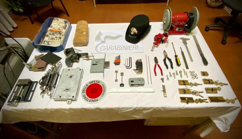 Nella perquisizione a casa sono stati trovati oltre agli occhiali anche strumenti per lo scasso, chiavi alterate, grimaldelli e varie serrature che fanno ipotizzare il loro utilizzo per reati contro il patrimonio. Gli occhiali sono stati restituiti alla titolare del negozio.