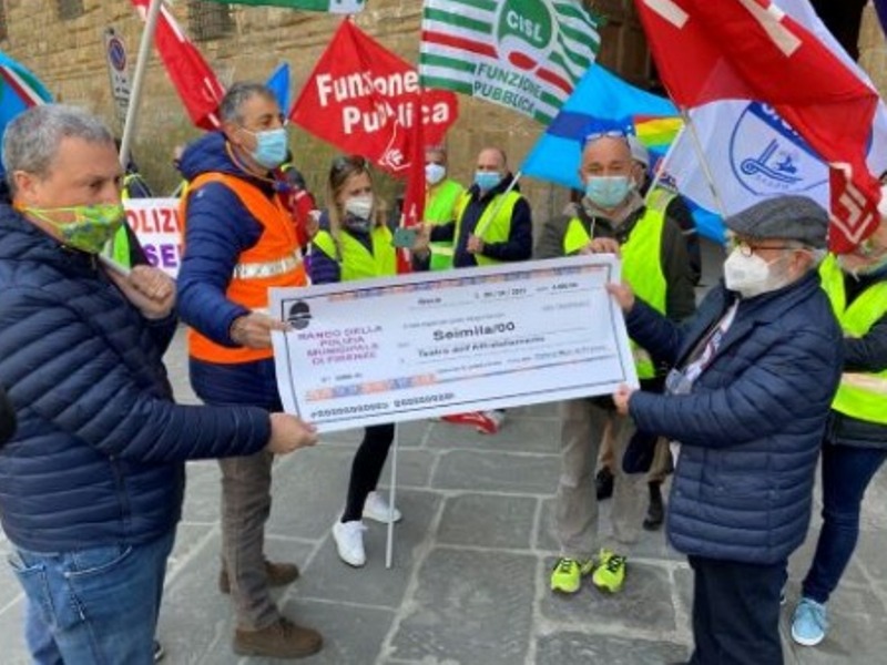 I lavoratori e le lavoratrici della Polizia municipale di Firenze, tramite la Rsu (con Fp Cgil, Cisl Fp, Uil Fpl, Csa, Dicapp), hanno raccolto 6mila euro che sono stati donati al teatro L’Affratellamento. L’assegno simbolico è stato consegnato stamani, davanti a Palazzo Vecchio, al presidente del Teatro Luigi Mannelli.