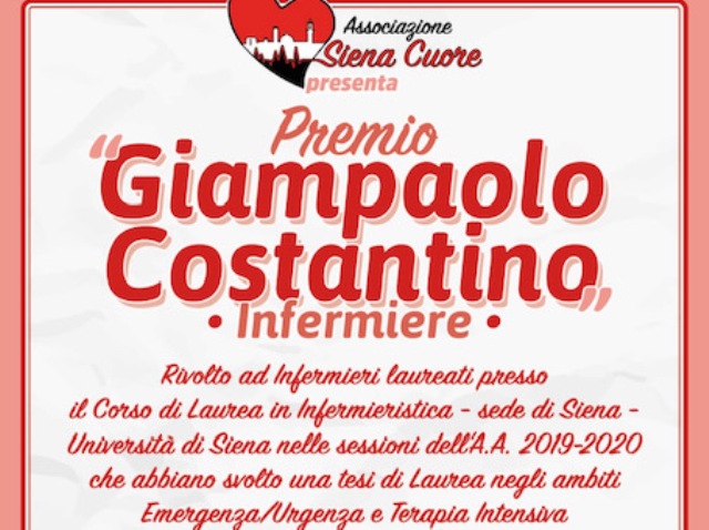 Il Premio “Tesi di Laurea Giampaolo Costantino” è rivolto ad Infermieri Laureati presso il Corso di Laurea in Infermieristica - sede di Siena - Università di Siena, nelle sessioni AA 2019-2020 che abbiano svolto una Tesi di Laurea negli ambiti Emergenza/Urgenza e Terapia Intensiva.