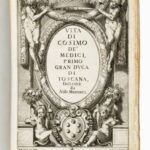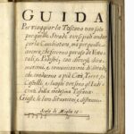 La sezione contiene, inoltre, un nutrito corpus di opere sulla Toscana, tra le quali: Il palio di Siena, una delle più ricche e significative opere sulla competizione senese, in tiratura limitata, frutto della collaborazione tra Piero Misciattelli e Duilio Cambellotti, cui si devono le bellissime xilografie a colori che adornano il testo (base d’asta €1000); le Memorie del calcio fiorentino… del 1688 di Giovanni Bardi e l’edizione originale delle Notizie istoriche delle chiese fiorentine divise ne' suoi quartieri… del Richa (base d’asta €500).