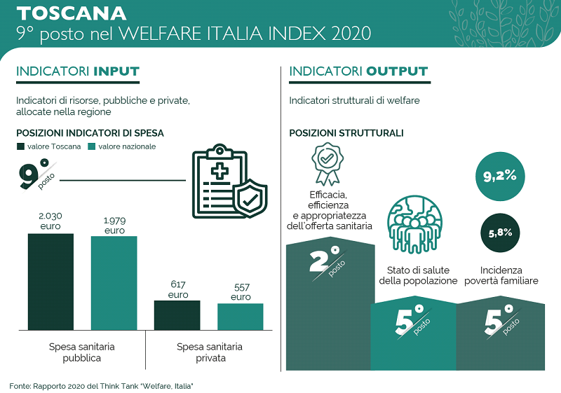 La Toscana si è classificata nel 2020 al 9° posto tra le Regioni italiane per efficacia e capacità di risposta del sistema di welfare.