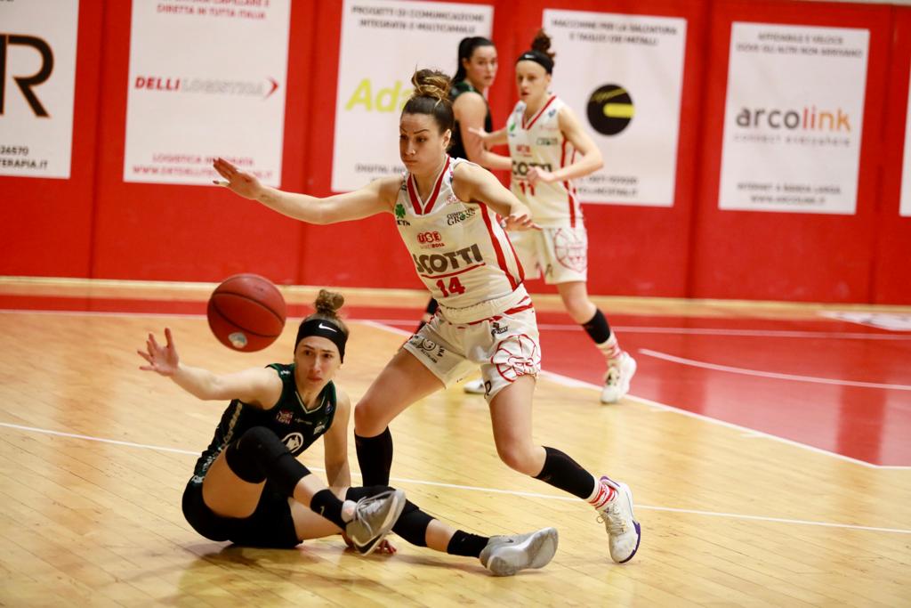 Il distacco resta pressochè invariato anche al 30' che vede le squadre sul 43-52 e la Scotti pronta a giocarsi il tutto per tutto nella frazione finale. Premasunac segna dalla lunga e poco dopo la tripla di Baldelli del meno 3 gira beffardamente sul ferro. Si alza l'intensità delle biancorosse e Smalls segna il 50-54. Coach Recupido approfitta di una palla persa in attacco da Smalls per chiamare timeout, mossa che però non serve perchè Baldelli appoggia il 52-54. La Scotti sbaglia qualche attacco di troppo mentre Harrison mette prima i liberi del 52-56 e poi il canestro del 52-58 che obbliga Cioni al timeout. Smalls mette il 54-58 al 7' ed il sogno finisce quando Harrison, a 40 secondi dalla sirena, prende il rimbalzo ed appoggia il 54-60. La gara finisce con questo risultato, martedì a Ragusa gara 2. Un'ultima considerazione: se la Passalacqua rispetterà il pronostico e passerà il turno, non veder più giocare la Scotti sarà un vero peccato.