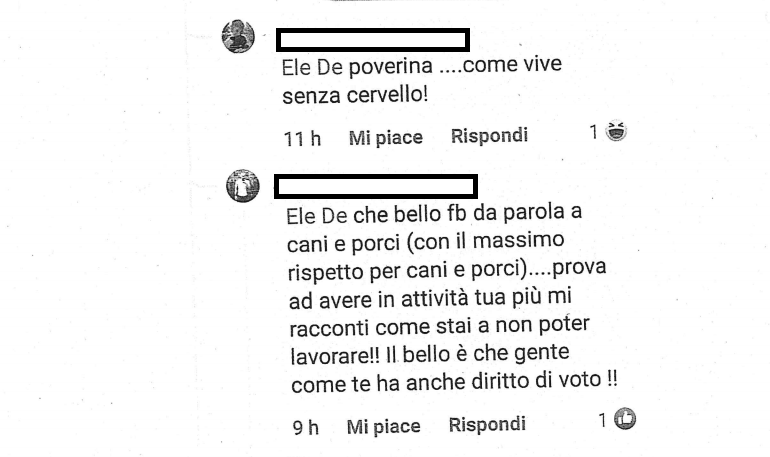 È questo tipo di atteggiamenti che incoraggia certi soggetti che vedono solo nel loro piccolo orticello e seminano odio. Per aver risposto ad un commento su un social media ho ricevuto anch'io dichiarazioni di odio e per questo ho deciso di querelare questi soggetti.