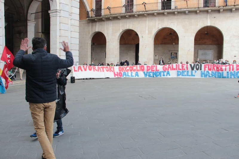 Il Sindaco di Pisa Michele Conti ha portato la propria solidarietà ai lavoratori di Toscana Aeroporti Handling impegnati stamani in un flashmob sotto Palazzo Gambacorti, sede del Comune di Pisa.