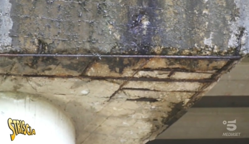 Striscia La Notizia ha fatto capolino a San Miniato, al viadotto San Bartolomeo. Si tratta del viadotto lungo la Fi-Pi-Li nel collegamento tra gli svincoli di San Miniato e Santa Croce sull'Arno. Nel servizio di Chiara Squaglia si vedono calcestruzzo che si disintegra, infiltrazioni d'acqua, cavi d'acciaio scoperti e rotti.