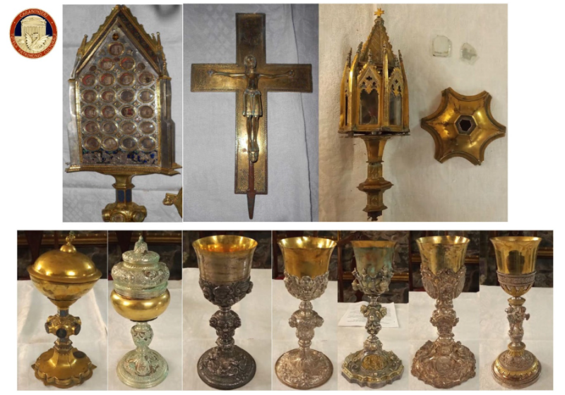 Al termine di un’indagine diretta dalla Procura della Repubblica di Catania, i Carabinieri del Nucleo per la Tutela del Patrimonio Culturale (TPC) di Palermo e della Sezione di Siracusa hanno restituito alla comunità di Siena le preziosissime oreficerie trafugate nella notte tra il 10 e l’11 luglio 1989 dal Museo del Seminario di Monteriggioni (SI). I manufatti sono di eccezionale valore storico-artistico, realizzati da orafi senesi o romani tra il XII e il XVIII secolo.