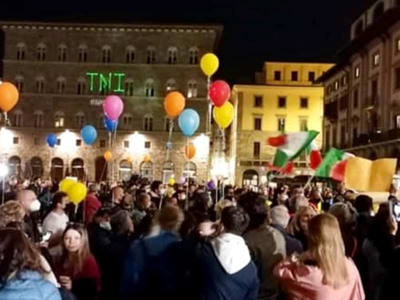 Molte persone erano presenti in centro a Firenze per manifestare, ma è intervenuta la polizia. Cinquantasette persone hanno ricevuto una denuncia per manifestazione non autorizzata e una multa per aver violato il coprifuoco. Tra i denunciati dalla digos figurano anche il leader di Tni Italia Pasquale Naccari e Momi El Hawi, il ristoratore fiorentino cofondatore del gruppo 'IoApro' contro le limitazioni anti Covid.