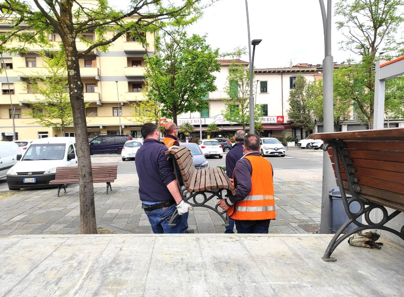 I due mesi di tempo senza sedute non sono trascorsi invano: gli assembramenti in piazza sono diminuiti e le panchine, ferme al cantiere, sono state restaurate e riverniciate, pronte per tornare ad accogliere i frequentatori di piazza Risorgimento.