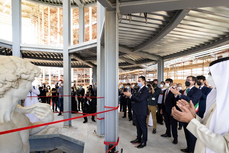 Dopo la cerimonia c’è stato lo scoprimento della copertura del Padiglione, tre scafi rovesciati di colore verde, bianco e rosso che danno vita al più grande tricolore realizzato nella storia del nostro Paese. C’è stato poi lo svelamento del gemello del David di Michelangelo, collocato nei giorni scorsi nel Padiglione a coronamento di un progetto guidato dal Commissariato per la partecipazione dell’Italia a Expo 2020 Dubai, dal Museo della Galleria dell’Accademia di Firenze e dal Ministero della Cultura in collaborazione con il Dipartimento di Ingegneria Civile e Ambientale dell’Università degli Studi di Firenze.