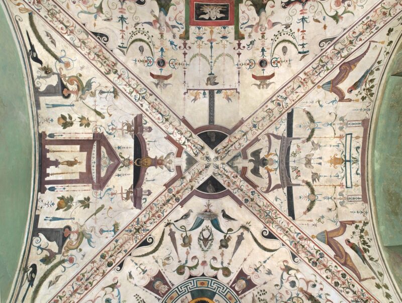 Così Giorgio Vasari, nei suoi Ragionamenti, ci invita a porre la testa all’insù per osservare il dipinto che rappresenta Sansepolcro, collocato sul soffitto del Salone dei Cinquecento, in Palazzo Vecchio; perché, in effetti, il meraviglioso palco dipinto è una sofisticata e simbolica mappa della Toscana, unificata e governata dal Duca Cosimo I de’ Medici, dove trovano posto le allegorie delle principali città della regione. Ed ecco che, mentre osserviamo il soffitto, come per incanto da Firenze ci ritroviamo proprio lì, a Sansepolcro. Semplicemente con un clic.