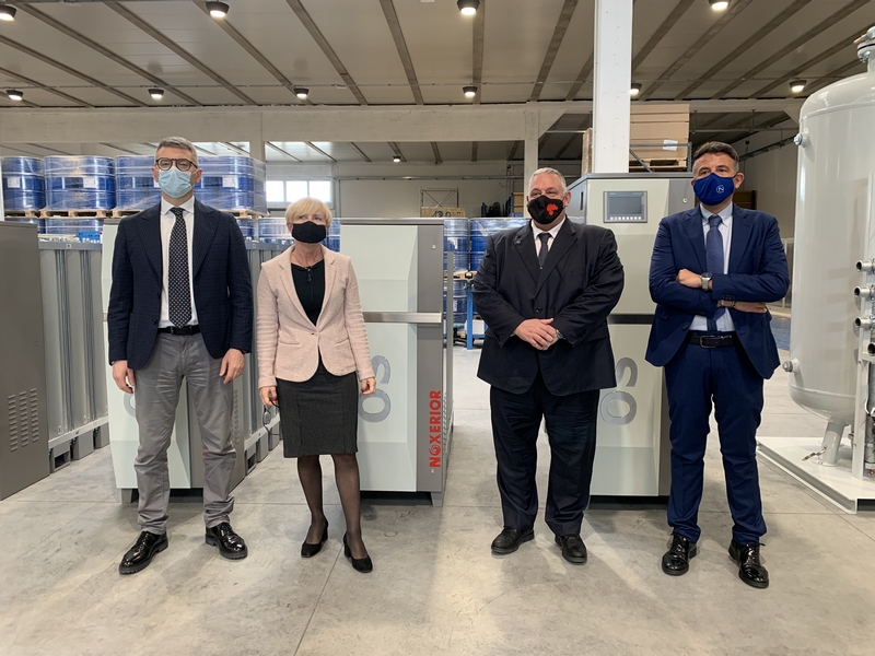 L'incontro istituzionale è stato organizzato da Confindustria Toscana Sud. «All'interno del polo di via Genova, simbolo di sviluppo del comparto manifatturiero e hi-tech della nostra città – dice Giovanni Mascagni, responsabile della delegazione di Grosseto dell'associazione di categoria – un'azienda come Noxerior merita la posizione di rilievo che sta acquisendo sui mercati internazionali. Crea da sempre lavoro stabile, innovazione, brevetti e tecnologie che si stanno dimostrando indispensabili, garantendo perdipiù vantaggi in termini di prestazioni e di costi. L'auspicio è che i generatori di azoto e ossigeno Noxerior possano continuare a consolidare la loro posizione tanto nei mercati internazionali quanto in quelli nazionali».