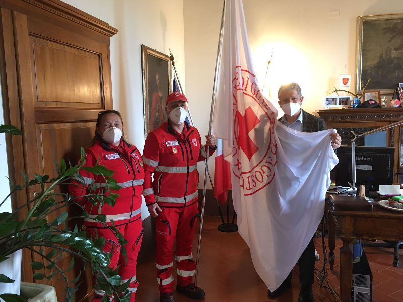 Una bandiera bianca con la croce rossa in mezzo, simbolo della CRI, è stata donata questa mattina al sindaco di San Miniato Simone Giglioli, dal vice presidente della della CRI del comitato di Ponte a Egola, Andrea Carucci e dalla volontaria Angela Cenci. L'occasione è la celebrazione, il prossimo 8 maggio, della Giornata mondiale della Croce Rossa, anniversario della nascita di Henri Dunant, fondatore del Movimento.