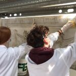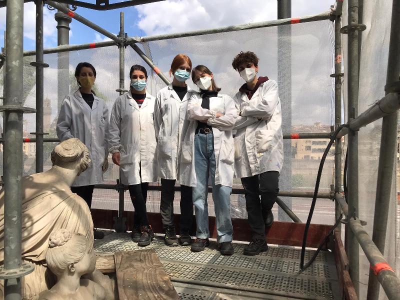 Per tutta la giornata di oggi, gli studenti dei corsi di restauro promossi dall'Istituto Spinelli, affiancheranno i docenti Steafano Landi e Daniela Manna, per condurre i test di pulitura anche con i solventi, di modo da valutare quale sia il metodo più efficace.