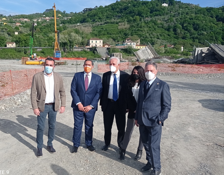 Nel dettaglio, nel cantiere del nuovo ponte sono in corso le attività in alveo per la realizzazione delle fondazioni delle pile. Ognuna delle tre pile poggerà infatti su fondazioni sostenute da 29 pali interrati in calcestruzzo armato, per un totale di 87 pali da 1 metro di diametro per oltre 30 metri di profondità. Proseguono anche gli interventi per la realizzazione delle rampe all’Autostrada A12 in collegamento diretto con la SS330 in località Ceparana. In particolare, è in fase di realizzazione il rilevato della rampa di uscita, l’adeguamento della strada d’argine e gli interventi per la connessione alla viabilità locale. Le rampe, i cui lavori sono stati iniziati a marzo, saranno aperte al traffico entro la fine di giugno; come più volte ribadito, il nuovo piano commissariale ha previsto la realizzazione di rampe provvisorie di accesso diretto all’Autostrada A12, che consentono un miglioramento rilevante della riconnessone territoriale con un percorso alternativo nel pieno rispetto delle norme di sicurezza e con un iter autorizzativo semplificato.