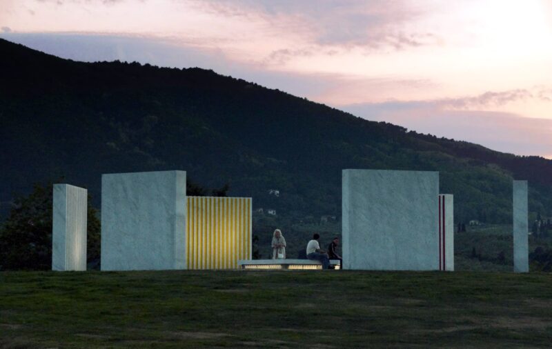 Sono in corso le opere di manutenzione dell’opera d’arte di Daniel Buren “Muri fontane a 3 colori per un esagono” presente nel parco pubblico della Villa Medicea La Magia. L’intervento prevede due distinte fasi: prima la manutenzione delle superfici marmoree e poi quella dell’impianto di illuminazione decorativa.Per quanto riguarda l’intervento sui marmi, i lavori sono stati affidati alla ditta Luigi Pandolfo di Marina di Carrara (MS), specializzata nel settore, per un importo di Euro 16.900,00 oltre iva. I lavori sono iniziati il 19 aprile scorso e sono tuttora in corso; la loro conclusione è infatti prevista in 20 giorni lavorativi, salvo eventuali imprevisti o problematiche che dovessero emergere in fase esecutiva.L'intervento prevede la pulizia delle superfici marmoree, la ripresa di eventuali parti danneggiate e la verniciatura delle parti tinteggiate, secondo i colori originali voluti dall'artista.La verniciatura si rende in particolare necessaria in corrispondenza delle scanalature dove scorre l’acqua, in quanto, proprio per l'azione dell’acqua, il colore originale risulta adesso compromesso e ricoperto in parte da patina biologica.Una volta conclusi i lavori di manutenzione delle superfici marmoree inizieranno quelli sull'impianto di illuminazione decorativa, che consisteranno nella sostituzione completa degli apparecchi illuminanti esistenti e non più funzionanti e di tutte le relative componenti elettriche, con modelli analoghi, adatti all'immersione. Questi lavori sono stati affidati alla ditta Primalux di Giacomo Allocca, con sede a Quarrata, per un importo di Euro 11.740,00 oltre iva.