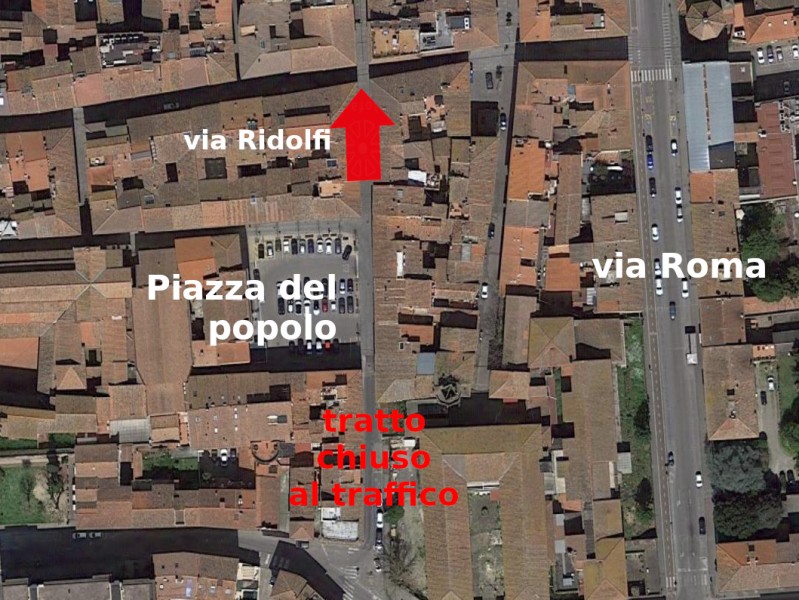Chi arriva da Via del Papa dovrà proseguire diritto fino a Via Roma, non sarà possibile svoltare su Via Ridolfi per raggiungere Piazza del Popolo.