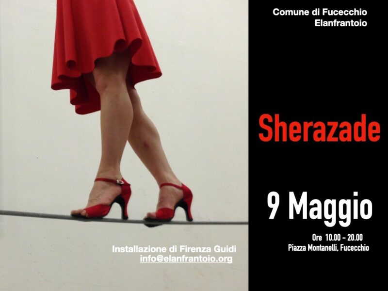 Dice la leggenda che Sherazade riuscì a salvare la sua vita e quella di altre donne raccontando per mille e una notte storie mozzafiato camminando sul sottile e pericoloso filo temporale che va dalla notte al giorno. La storia, per Sherazade, è vita e le sue storie danno vita. La strada immaginaria percorsa ogni notte da Sherazade indossa molte scarpe investite di lacrime, destino o desiderio proprio come quelle di Cenerentola. Scarpe rotte e scarpe nuove, scarpe da bimba e scarpe da vecchia, scarpe da lavoro e scarpe da donna in festa, scarpette da ballo e scarpe da sposa, scarpe per arare i campi e scarpe da guerra. Centinaia di paia di scarpe saranno le protagoniste di questa Installazione site-specific creata per la Piazza Montanelli di Fucecchio, crocevia del paese e crocevia di culture.