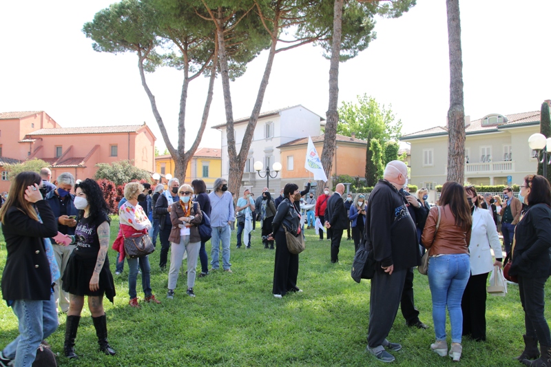 Al centro del flashmob, organizzato nell’area verde della piazza e mosso dagli interventi dei politici, la tutela del lavoro del distretto, “contro tutte le mafie e per la legalità delle istituzioni” e la richiesta unanime nei confronti delle istituzioni coinvolte nelle indagini, a “fare un passo indietro”. Sul palco, che ha ospitato le voci degli esponenti della Lega, anche delle pelli colorate, stese al sole e battute durante i cori con un martello simulando il suono di un tamburo, simbolo del lavoro del distretto conciario di Santa Croce sull’Arno.