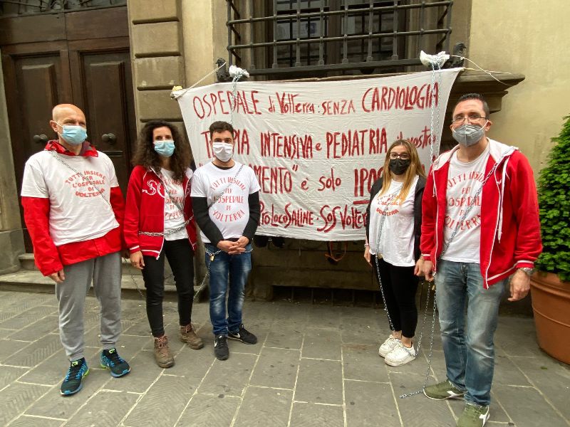 La Capogruppo del Movimento 5 Stelle, Irene Galletti, dopo aver favorito l'incontro tra i rappresentanti dei Comitati per la difesa della salute di Volterra e Massa Marittima, il Presidente della Terza Commissione (Sanità e politiche per la salute), Enrico Sostegni e la Vicepresidente della Commissione istituzionale per il sostegno, la valorizzazione e la promozione delle aree interne della Toscana, Donatella Spadi, ha raggiunto i manifestanti per raccogliere le loro istanze, rinnovare il patto di difesa del diritto alla salute nei territori periferici e annunciare una interrogazione immediata nella quale il Presidente Eugenio Giani dovrà rispondere dei 6 milioni di euro annunciati per l’Ospedale di Volterra ai microfoni di Striscia la Notizia in un servizio dello scorso gennaio.