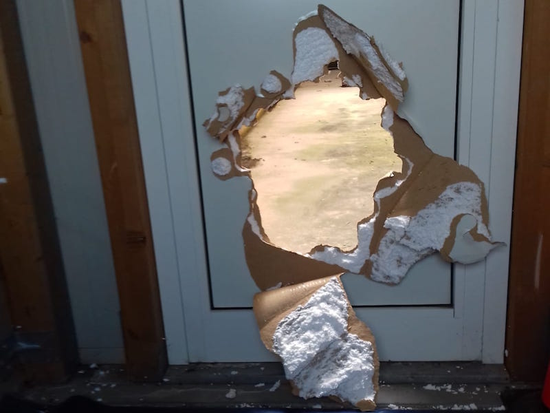 Un foro nella porta della palestra e tanto sgomento. Succede a Stabbia, nell'impianto utilizzato da Cerretese Pallavolo. A darne notizia è proprio la società sportiva con una foto postata sul proprio profilo Facebook.