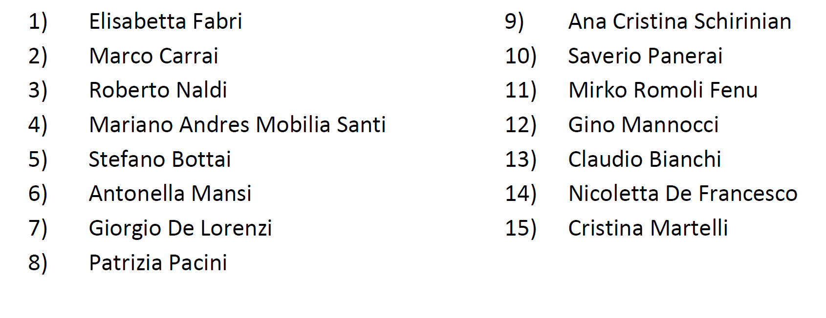 I primi nove componenti del Consiglio di Amministrazione sono stati eletti dalla lista presentata dall’azionista Corporacion America Italia S.p.A., il consigliere Saverio Panerai è stato eletto dalla lista presentata dall’azionista SO.G.IM. S.p.A. mentre i rimanenti cinque consiglieri sono stati eletti dalla lista presentata dall’azionista CCIAA di Pisa.