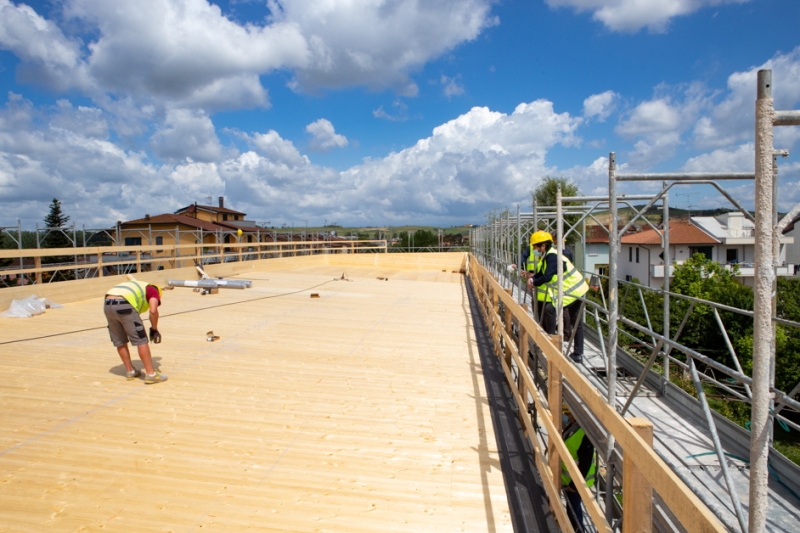 La tecnologia a pannelli in legno X-lam, grazie alla ridotta massa rispetto alle costruzioni di tipo ordinario, garantisce un efficiente comportamento nei riguardi delle azioni sismiche oltre all'ottimo comportamento all'azione del fuoco.