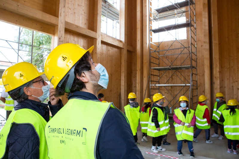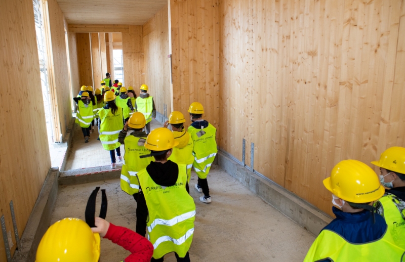 La nuova scuola primaria ‘Dante Alighieri’ di Marcignana è in fase di costruzione. Questa mattina, mercoledì 19 maggio, alcuni degli studenti che la frequenteranno hanno avuto il privilegio di visitarla per la prima volta. Sarà la prima scuola di legno di Empoli e proprio in mezzo alle aule e ai corridoi con le pareti di conifere hanno effettuato la loro visita guidata le bambine e i bambini della classe 2a, accompagnati dalle insegnanti e dal professor Salvatore Picerno, dirigente scolastico dell’istituto comprensivo Empoli Ovest.