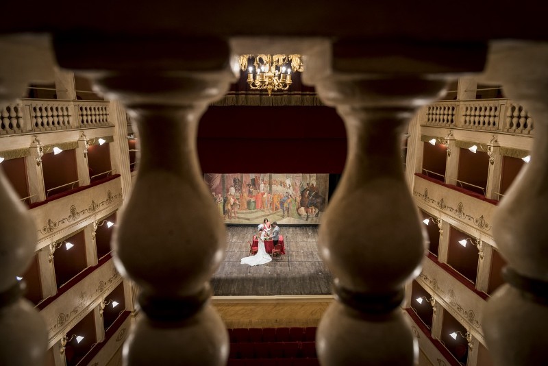 Per un giorno, il Teatro del Popolo potrà dunque diventare la location indimenticabile per pronunciare il fatidico “si”, e anche per poter immortalare la coppia attraverso sequenza di scatti fotografici davvero originali, spaziando tra il palcoscenico, la platea ed i palchetti, questi ultimi a disposizione di familiari, parenti e amici. Suggestiva la cornice del sipario storico, che conferirà un’atmosfera particolare alla celebrazione del matrimonio: realizzato nel 1868 dal senese Dario Maffei, raffigura la Pace stipulata a Castelfiorentino a conclusione della battaglia tra Guelfi e Ghibellini, ricordata anche da Dante nella “Divina Commedia”.