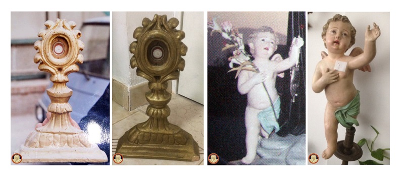 Il reliquiario e l’angelo policromo erano posti nel tabernacolo della Chiesa della Madonna delle Grazie di Calvanico da cui furono asportati nel 2011.