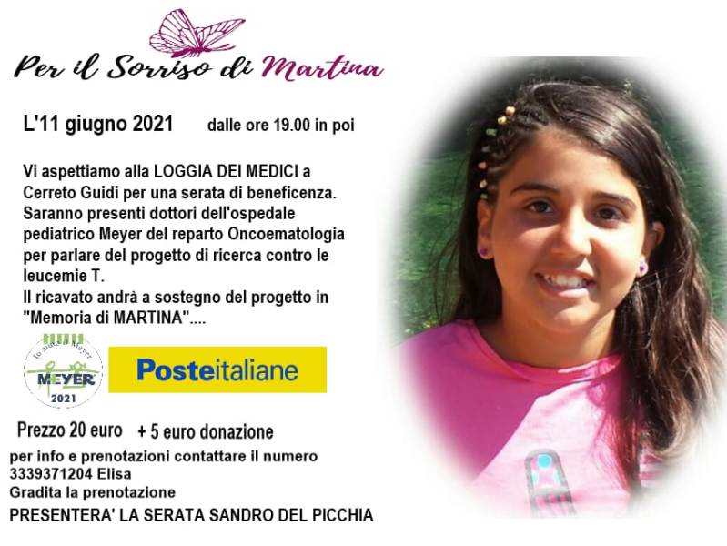 Una raccolta fondi online e una cena benefica: sono questi gli strumenti attraverso cui Elisa Sisi, una mamma coraggiosa, sta raccogliendo fondi da destinare alla Fondazione Meyer per sostenere “In memoria di Martina”, un progetto di ricerca del Laboratorio di Oncoematologia pediatrica dell’Ospedale pediatrico fiorentino. L’obiettivo? Conoscere meglio la leucemia linfoblastica acuta di tipo T ed esplorare nuove possibilità terapeutiche. Elisa Sisi ha dichiarato guerra a questa malattia che due anni fa ha portato via sua figlia Martina, una bambina dal sorriso dolcissimo.