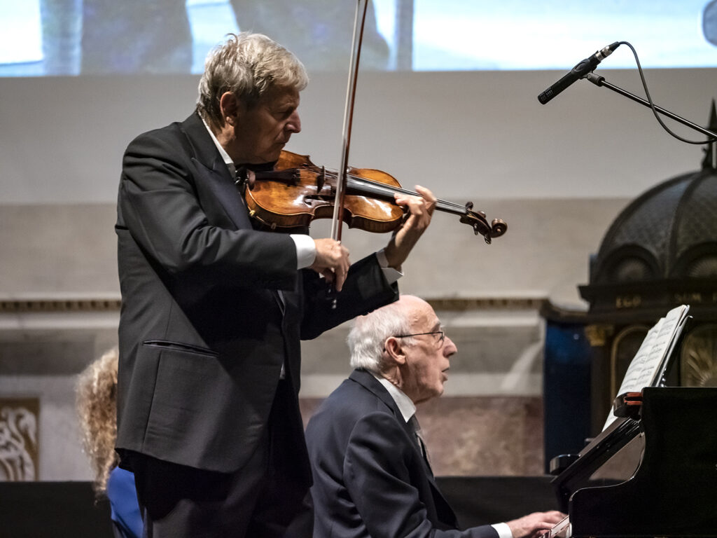L’esecuzione, magistrale e intensa, domenica scorsa ha chiuso il recital in San Francesco, appuntamento clou della 58esima edizione della Sagra Musicale Lucchese. Un successo annunciato, con due mostri sacri del panorama musicale italiano e internazionale come il violista Uto Ughi e il pianista Bruno Canino, che ha segnato la piena ripresa della musica dal vivo per l’associazione presieduta da Luigi Rovai.