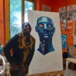 Di grande interesse è anche l’impegno artistico di Mattia Desideri, noi l’abbiamo visto in occasione di una sua performance realizzata presso il Centro Intifada di Ponte a Elsa. Mattia ha realizzato il suo intervento, insieme ad altri giovani artisti. Si tratta di un grande pannello di legno, sul quale con la tecnica del collage, ha attaccato una serie di ritagli di stoffa, già predisposti in precedenza, tutti giocati su sfumature blu.