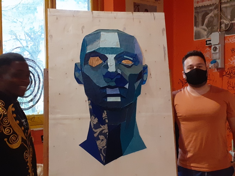 Si tratta infatti di un’opera dedicata ai migranti: “Il blu – dice Mattia - è il colore del mare, il blu è un colore diverso da quello che il senso comune vede come quello della loro pelle. Migranti sono infatti anche bianchi o di altre sfumature cromatiche”. Mattia è – lo si capisce subito - un giovane architetto che, d’accordo con la sua fonte ispiratrice - Leonardo da Vinci - non si fa mancare nulla, almeno per quanto riguarda le possibilità di ricerca espressiva. Sono infatti molti altri i campi in cui si è sperimentato.