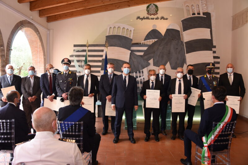 Tra le autorità che hanno presenziato e consegnato con il Prefetto le onorificenze e le medaglie, il Sindaco di Pisa, Michele Conti, il Presidente della Provincia, Massimiliano Angori, il Rettore dell’università di Pisa, Paolo Mancarella, il Generale di Brigata Aerea, Alessandro De Lorenzo, il Comandante Provinciale della Guardia di Finanza, Generale di Brigata Giancarlo Franzese, il Sindaco di San Giuliano Terme, Sergio Di Maio, il Vicesindaco di Cascina, Cristiano Masi, il Sindaco di Bientina, Dario Carmassi, il Vicesindaco di Pontedera, Alessandro Puccinnelli, il Consigliere comunale di San Miniato, Michele Fiaschi, il Sindaco di Guardistallo, Sandro Ceccarelli, il Sindaco di Santa Maria a Monte, Ilaria Parrella, il Sindaco di Vicopisano, Matteo Ferrucci, il Presidente dell’Ordine dei Medici, Giuseppe Figlini.