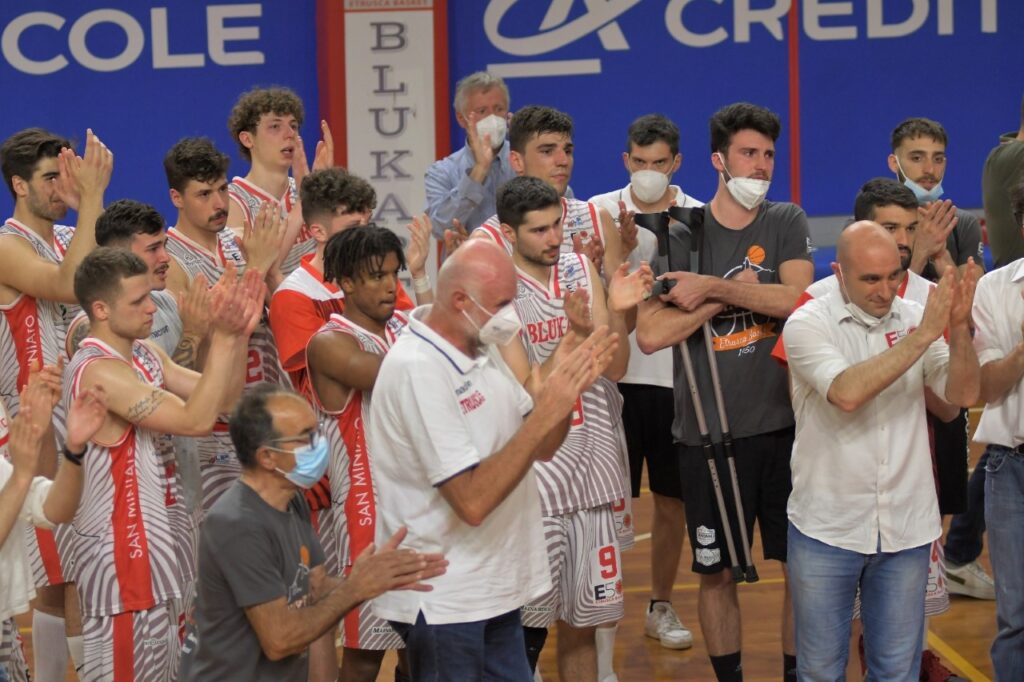 Una Blukart stoica si arrende solo nel finale a Chiusi, dopo un secondo tempo giocato ad un ritmo infernale. La squadra di coach Barsotti si presenta alla sfida con Quartuccio e Santini fermi ai box, assenze che vanno ad aggiungersi a quella di Caversazio, ma impostano una gara di altissimo livello in fase difensiva, in un primo quarto nel quale concedono solo 13 punti agli avversari, con il primo quarto che si chiude sul 9 a 13. Nel secondo quarto Chiusi trova il massimo vantaggio della gara sul 13 a 23, grazie a Bortolin e Fratto, ma l'Etrusca riesce a reagire prima dell'intervallo grazie ad un Tozzi ispiratissimo, Bellachioma e Benites, riuscendo così a chiudere sul meno 5, sul 27 a 32, all'intervallo lungo. Al rientro dagli spogliatoi arriva il capolavoro Etrusca: Carpanzano, Benites e Neri, top scorer dei suoi con 16 punti a fine gara, riescono ad annichilire la difesa di Chiusi e la Blukart ribalta la gara con un 18 a 0 terrificante, con gli ospiti che sprofondano a meno 13 all'inizio dell'ultimo quarto. Nell'ultima frazione Chiusi trova in Raffaelli il giocatore chiave per riprendere l'inerzia della gara: l'esterno chiusino, top scorer del match con 18 punti, prende per mano la squadra segnando da tutte le posizioni e riesce ad impattare la gara a due minuti dalla fine, di fronte ad una Etrusca a corto di energie fisiche e mentali, con anche Carpanzano costretto ad uscire per infortunio. È ancora Raffaelli a trovare il canestro decisivo a trenta secondi dalla fine, con il tiro di Lorenzetti all'ultimo secondo che sbatte sul ferro e sancisce l'accesso alla finale per Chiusi. Per San Miniato invece finisce una stagione che entrerà nella storia della società, con una semifinale playoff raggiunta, con un gruppo di ragazzi straordinario, salutato finalmente dal pubblico tornato al Fontevivo e dagli avversari che con un bellissimo gesto hanno lasciato una passerella di onore agli sconfitti.