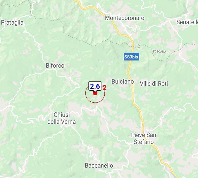 Quest'oggi alle 9.52 è stata avvertita una scossa di terremoto nell'Aretino, nel territorio di Chiusi della Verna, al confine tra Toscana ed Emilia Romagna. La scossa è stata di magnitudo 2.6 della scala Richter. L'epicentro, a 9,8 km di profondità, era in zona via delle Pratelle. Non sarebbero segnalati danni a cose o persone. Una seconda scossa di magnitudo 3 è stata percepita un minuto prima, sempre nella stessa area.