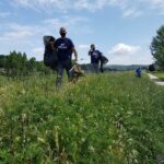Tutti muniti di guanti, scarponi, volontà, pinze telescopiche, borracce donate dall’associazione e le bellissime magliette.